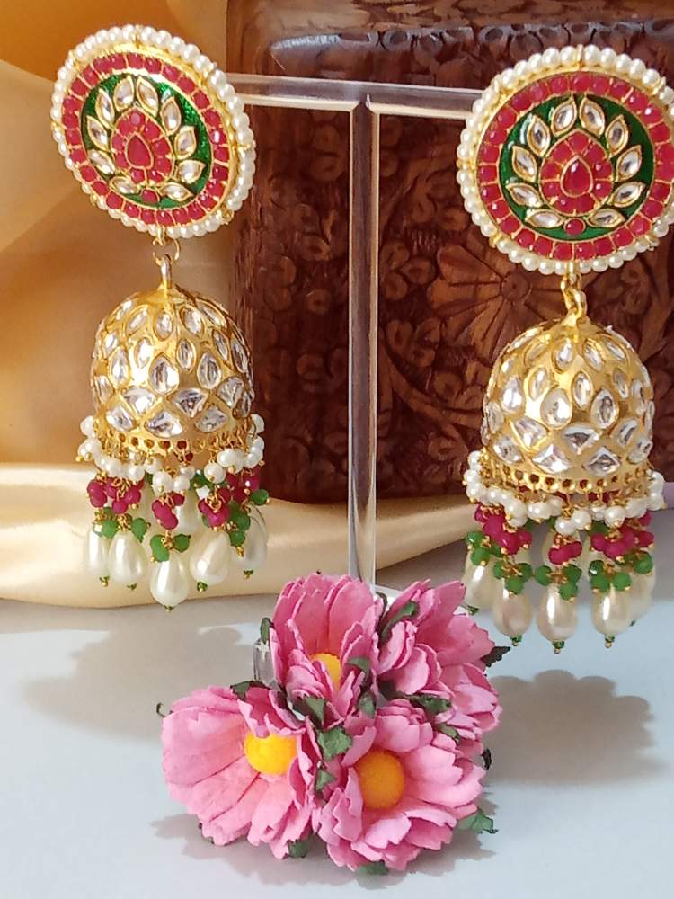 GAARGI GOLDEN RED-GREEN LONG JHUMKAS