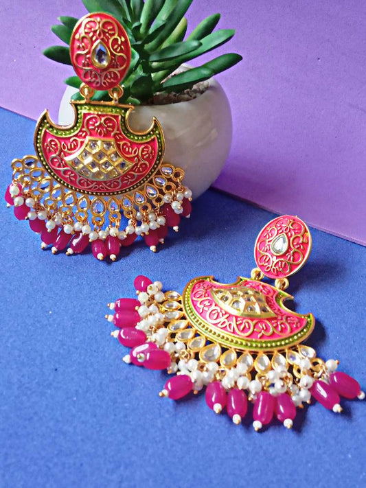NOOR PINK GREEN CHANDBALI DANGLERS