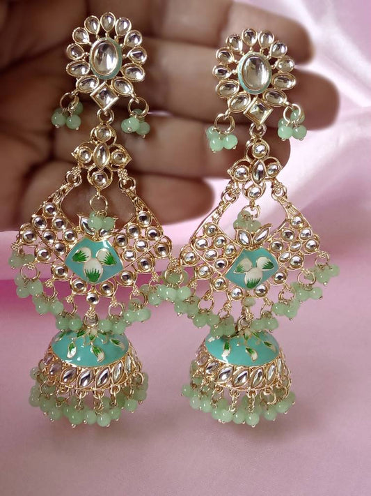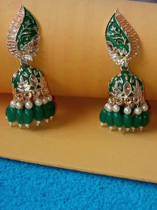 30% OFFARABINDA GREEN WHITE JHUMKAS