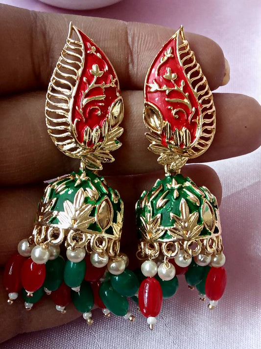 GAARGI GOLDEN RED-GREEN LONG JHUMKAS